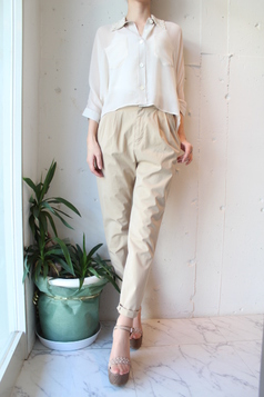 ウエストサイドにベルトが付いているので調節可能になっています股上が深くトレンドのハイウエストタイプ。とても履きやすいカジュアルPT。