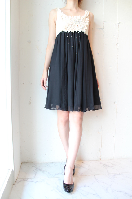 フラワーモチーフ型に手刺繍したOP。サイズ 36